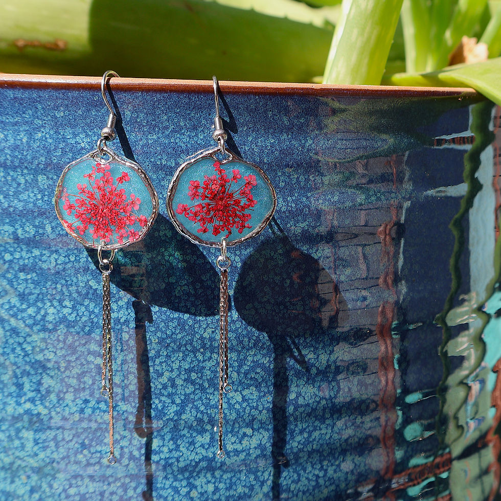 The welcome feelings of summer sunshine, a warm breeze, the smell of fresh cut grass and flowers frozen in time. All of my earrings are created using high quality UV resistant resin and hypoallergenic hooks. The majority of the flowers are hand-picked and pressed by me. These earrings are sure to impress and add that "hippie" flair to any wardrobe.