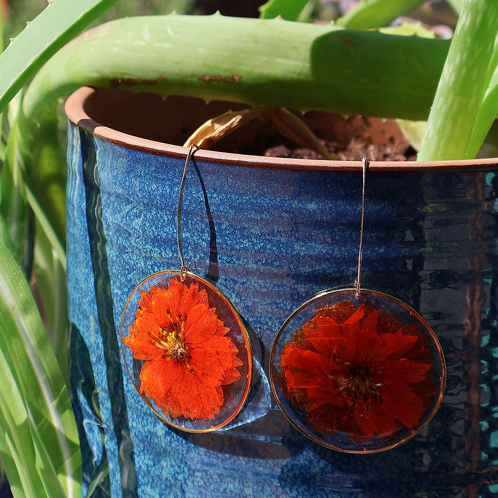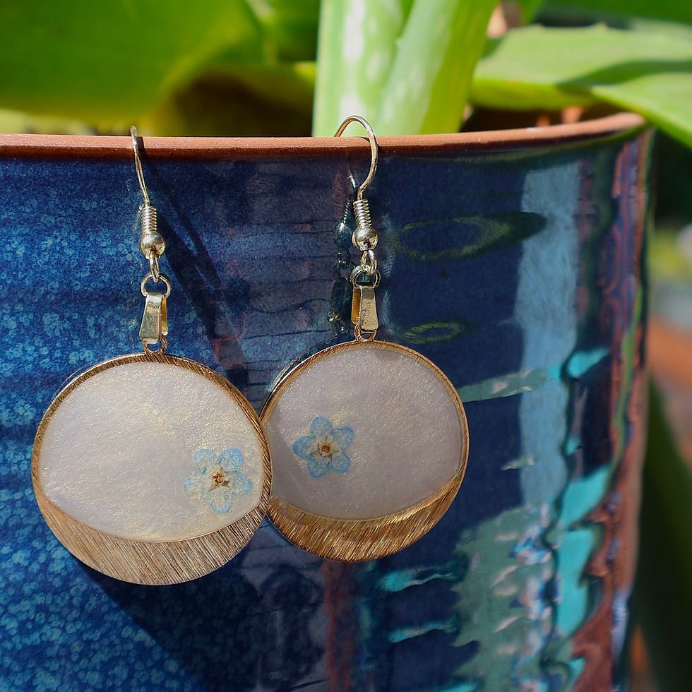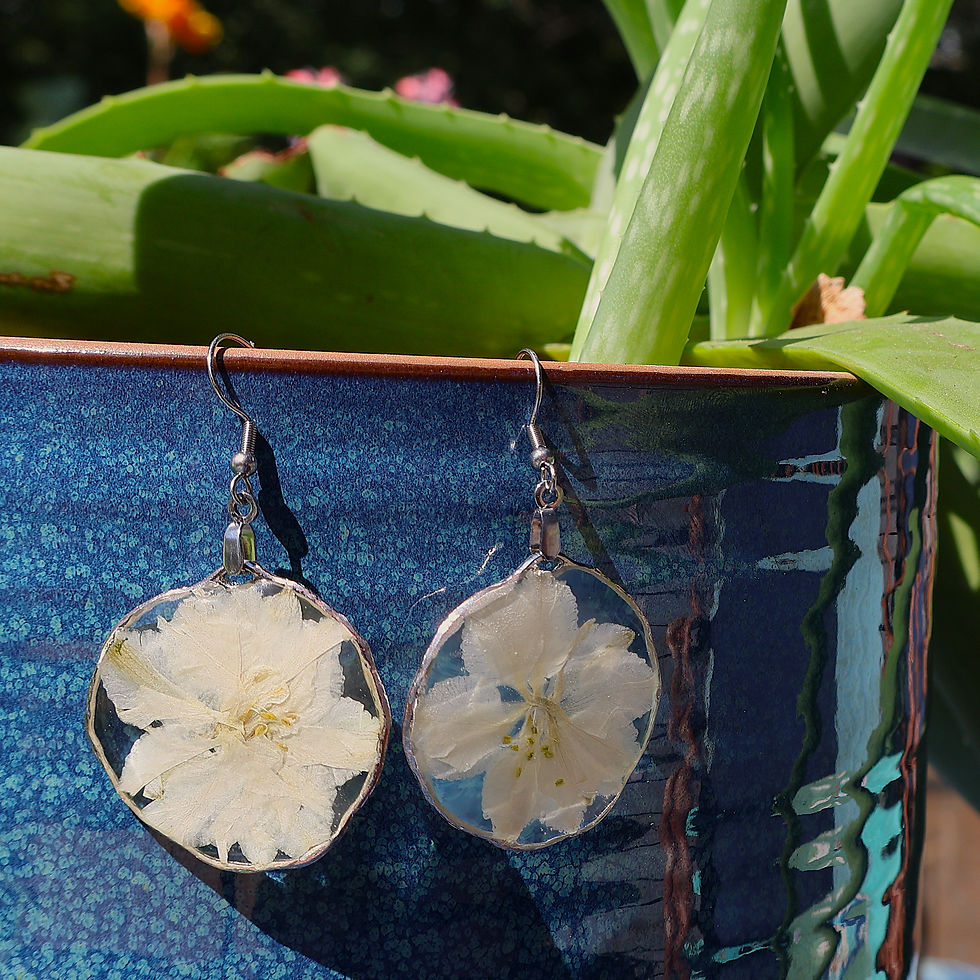 The welcome feelings of summer sunshine, a warm breeze, the smell of fresh cut grass and flowers frozen in time. All of my earrings are created using high quality UV resistant resin and hypoallergenic hooks. The majority of the flowers are hand-picked and pressed by me. These earrings are sure to impress and add that "hippie" flair to any wardrobe.